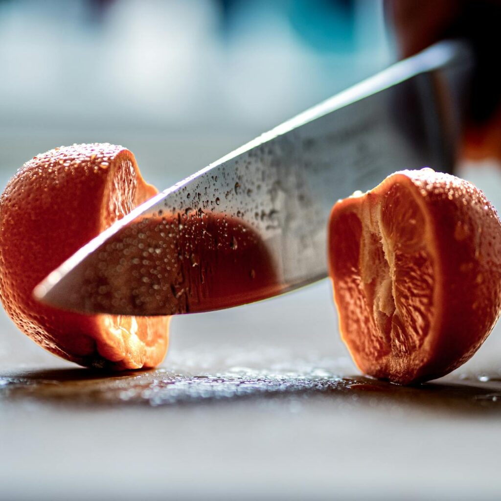 - İnce ağız açılı, iyi honlanmış bir şef bıçağı. Keskinlik kadar kesme tekniği de etkilidir; bıçağı ileriye doğru akıtarak kesin.