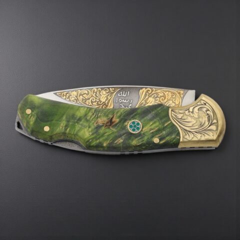 El Yapımı Altın Çakı Allah Yazısı Figürlü – N690