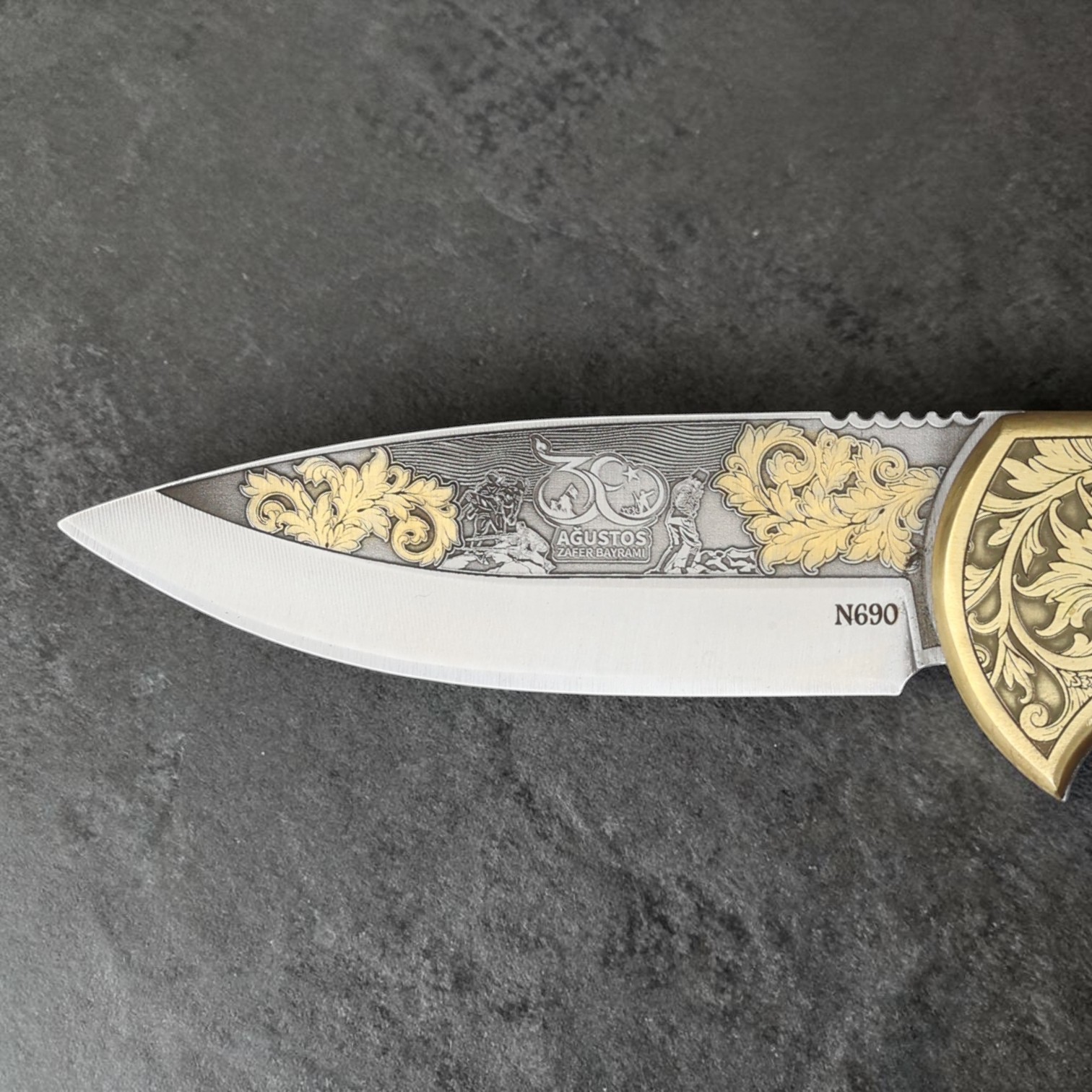 El Yapımı Altın Çakı – Çift Balçak 30 Ağustos Figürlü
