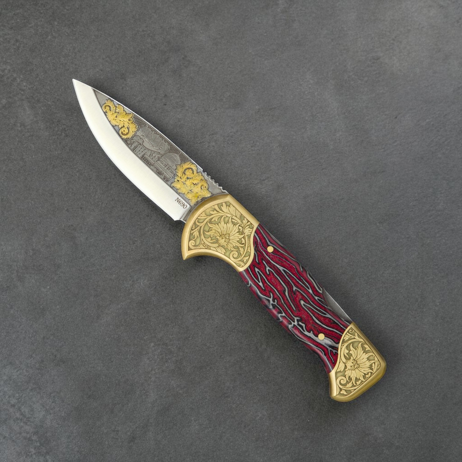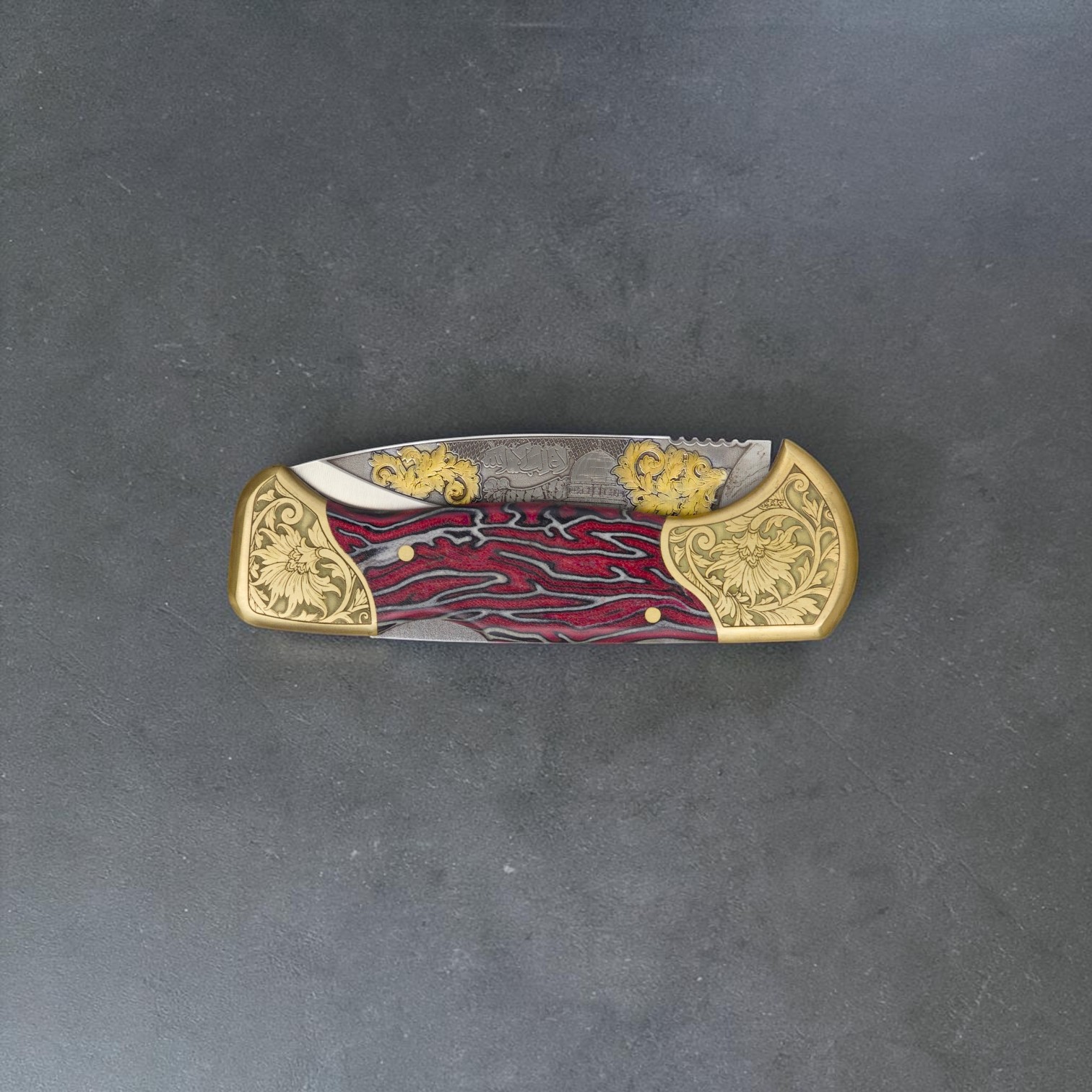 El Yapımı Altın Çakı – Çift Balçak Mescid-i Aksa Figürlü Kırmızı