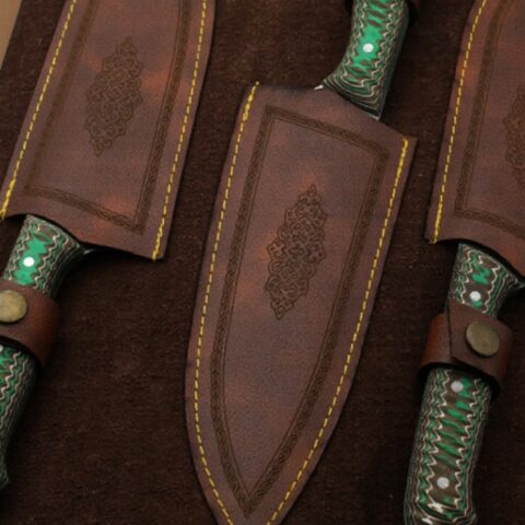 El Yapımı Şef Bıçağı Seti – Deri Çantalı